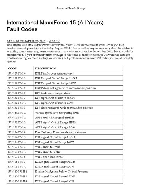 Read Online maxxforce engine fault code list Doc online is a convenient and frugal way to read maxxforce engine fault code list you love right from the comfort of your own home. Yes, there sites where you can get Doc "for free" but the ones listed below are clean from viruses and completely legal to use.